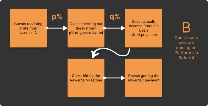 - Constantly Focus on converting B (guests on Platform) to A (users on Platform) who can become sources of future referral