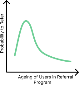 Graph — Users age on Referral Program vs Probability to refer further