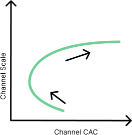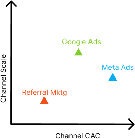 Typical Channel CAC and Scale Performance for an established category. Ex: Travel, E-Commerce