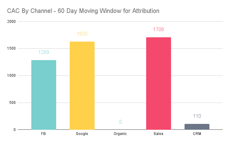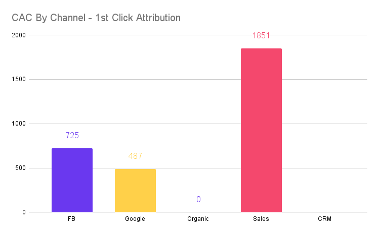 - Google seems to have the lowest CAC amongst paid channels